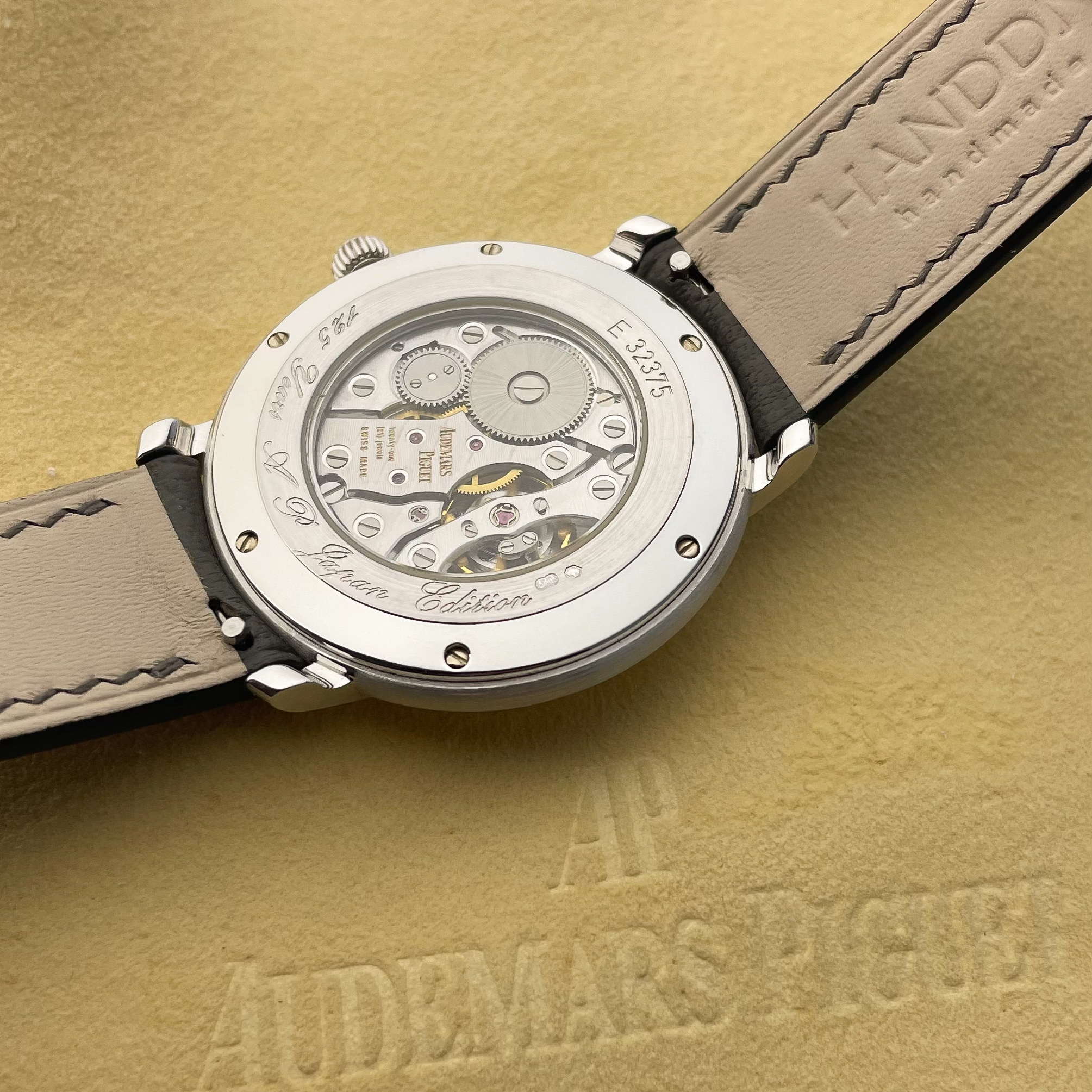When the watch is turned over you see the perfectly finished caliber 3090. Furthermore there is hand engraving on the unpolished case to commemorate 125 years of AP. The movement looks perfect and is running very well. Winding it is as smooth as it gets.