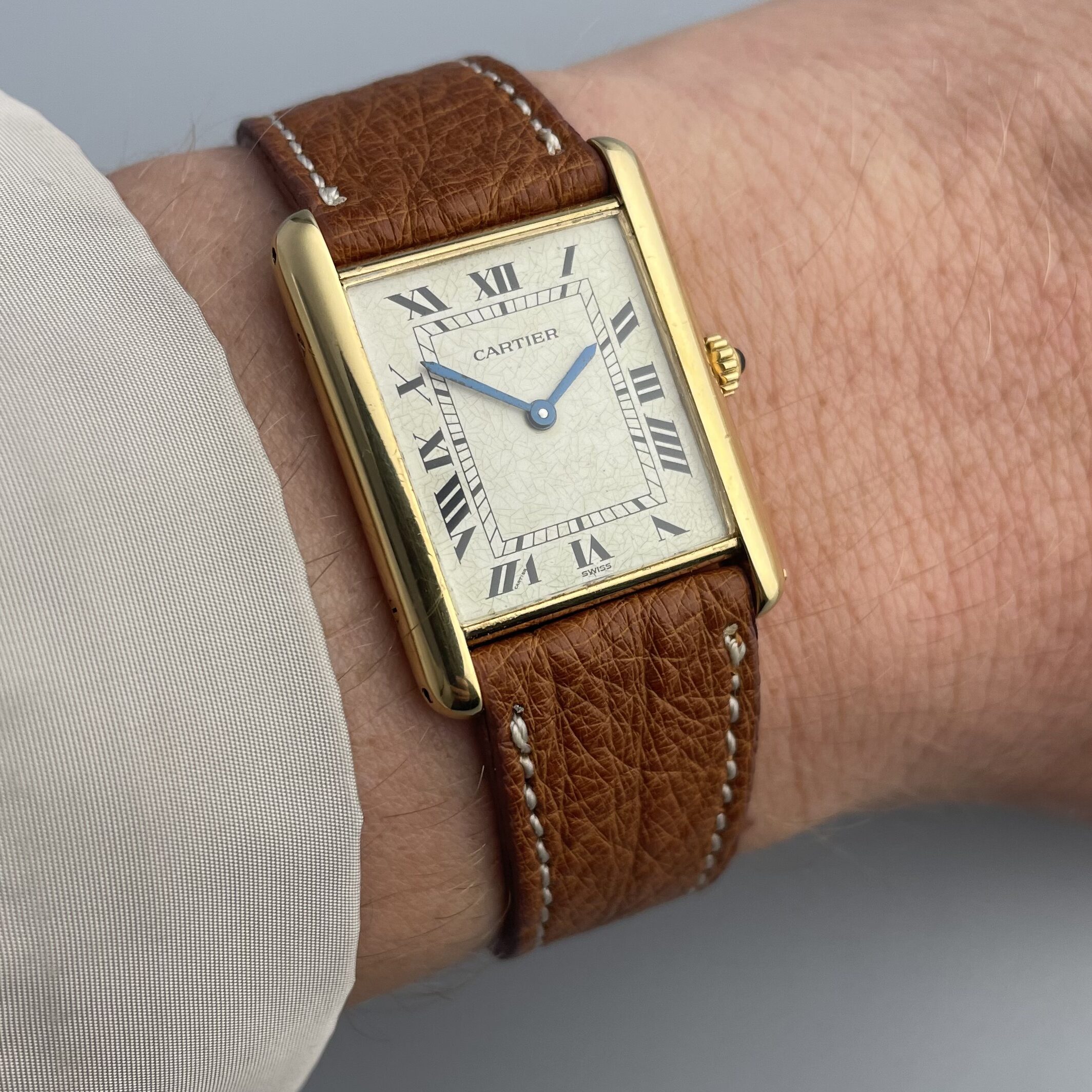 If you happen to have a similar Cartier watch which you would like to sell, we are always looking for those. We are interested in almost all Cartier wristwatches produced in the last century, especially in good condition. You will find more information on selling a vintage watch here or you can move directly to the sales form here.