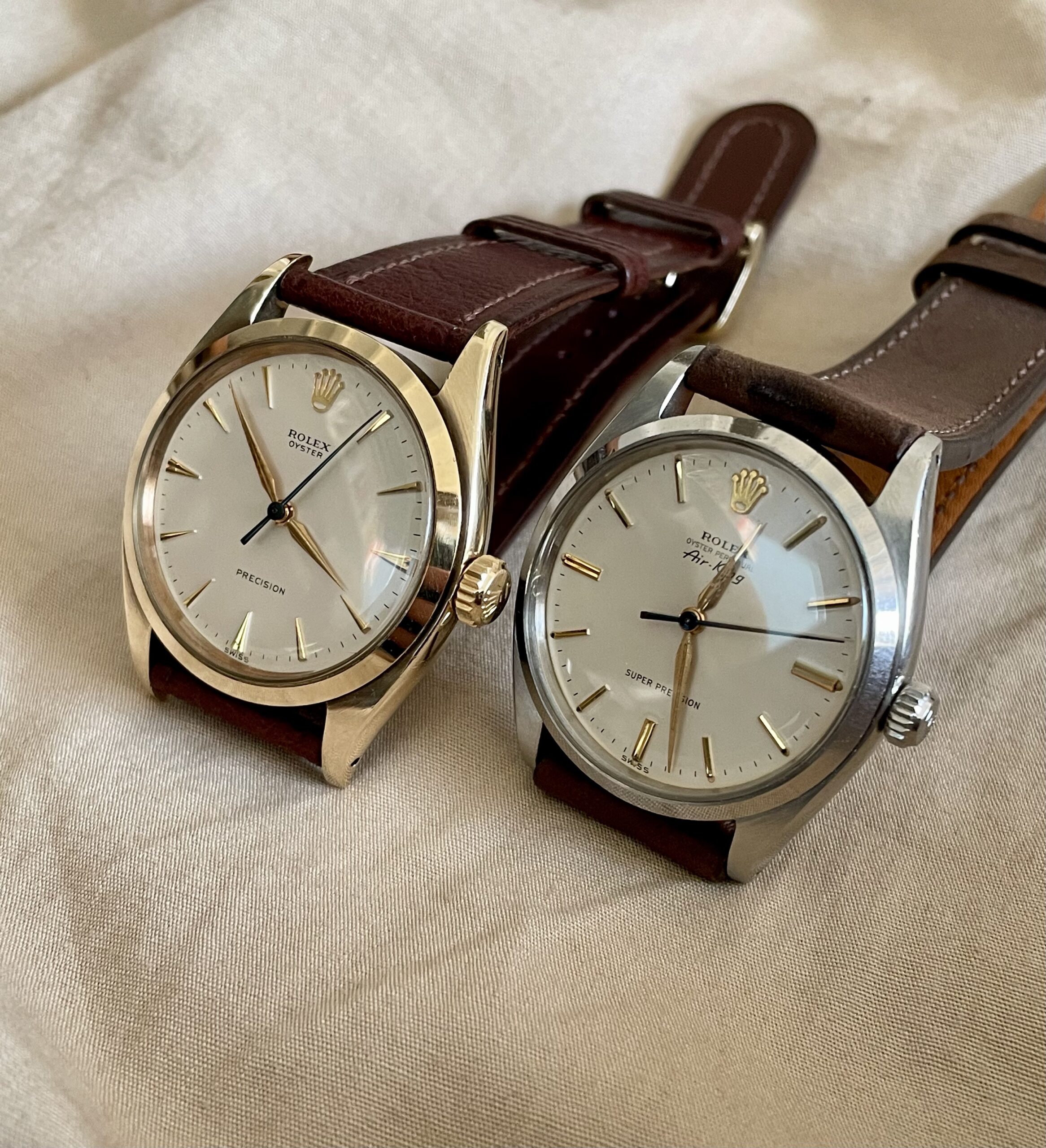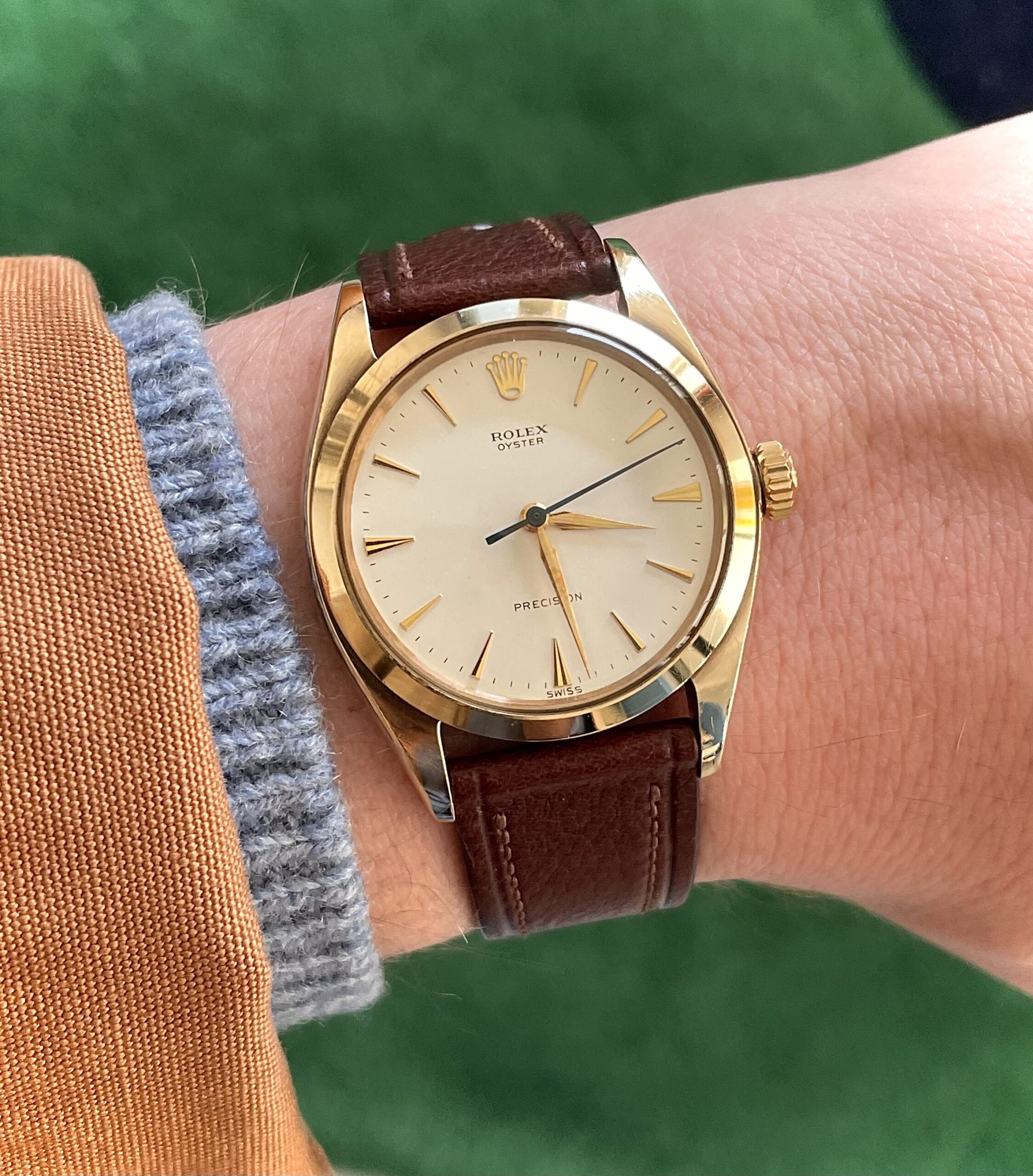 Sometimes it is the simplest watches that leave the strongest impressions. This Rolex that was especially produced for the UK market in 1961. It is so basic that to me it is close to perfection. The perfect balance between the robustness of the oyster case and the class of yellow gold. Another thing the watch has going for it, is perfect symmetry, as the reference 6462 does not have a date window. The leaf hands and fancy dart markers compliment the glossy cream dial. Add a blued steel central second hand to that and you have a winner. The absence of luminous radium enabled the dial to survive in excellent condition.