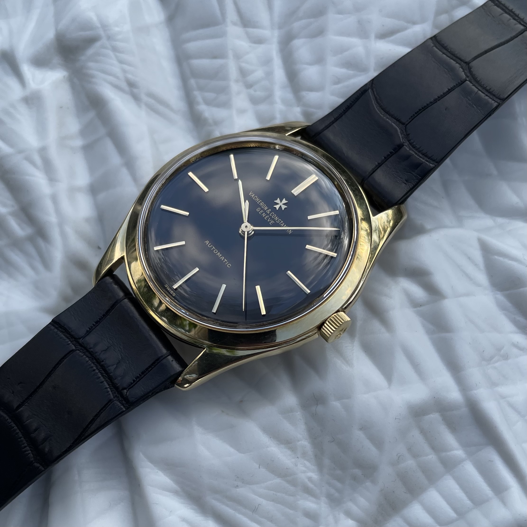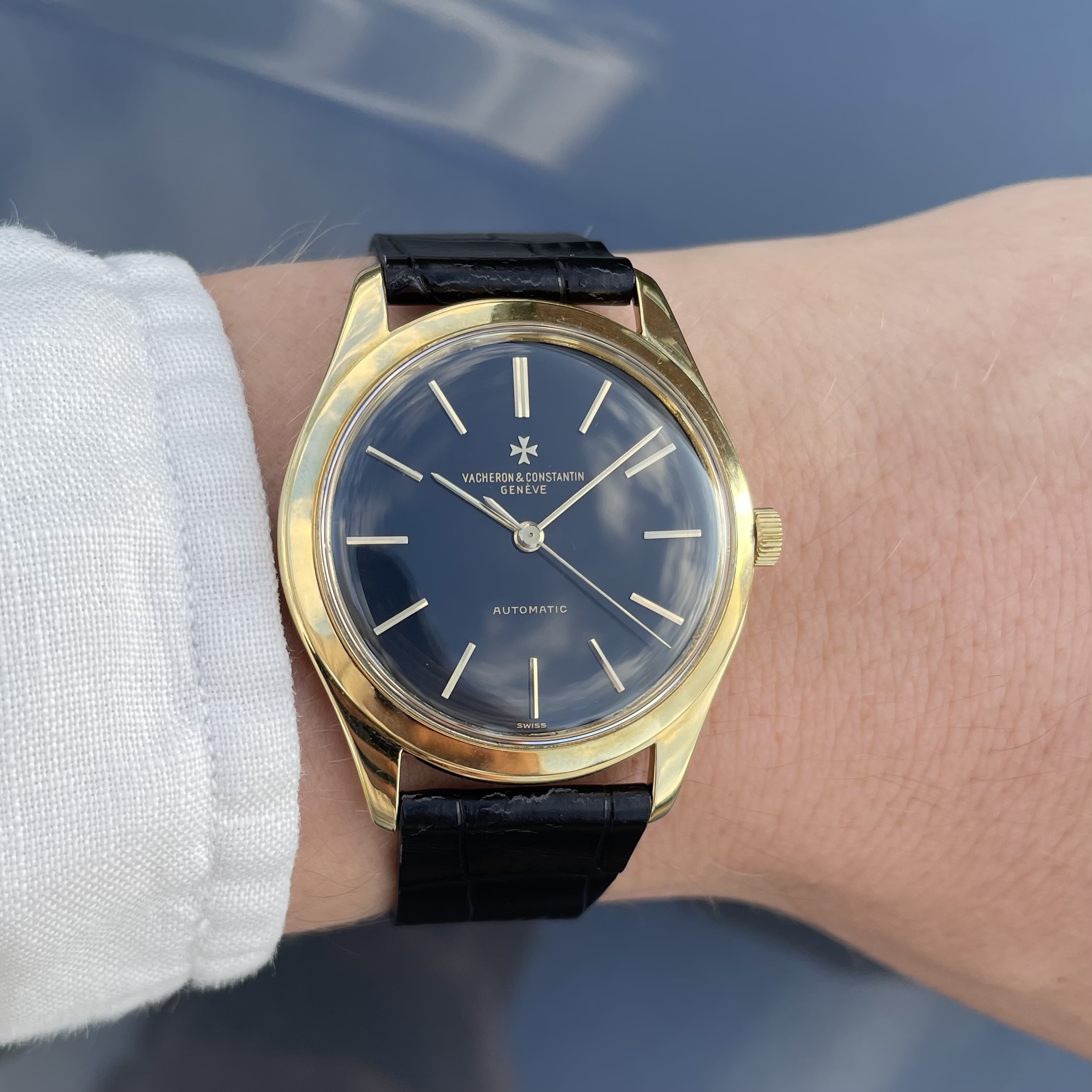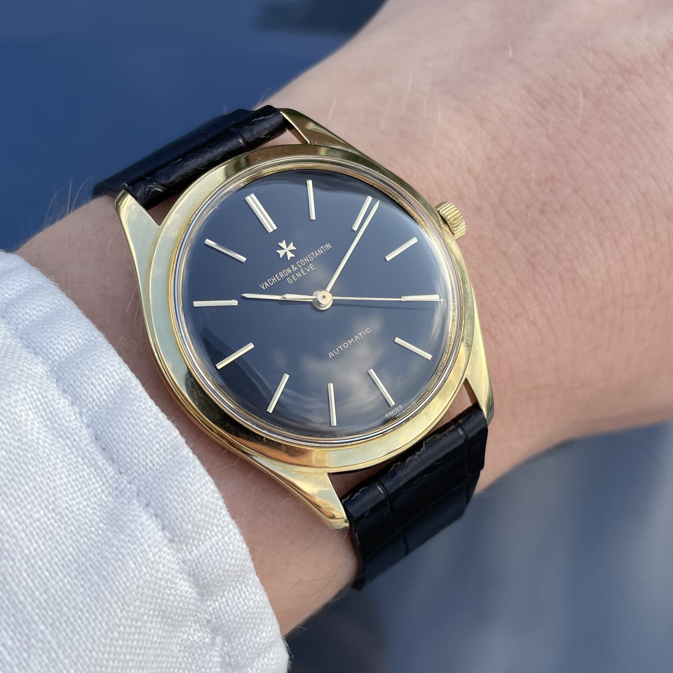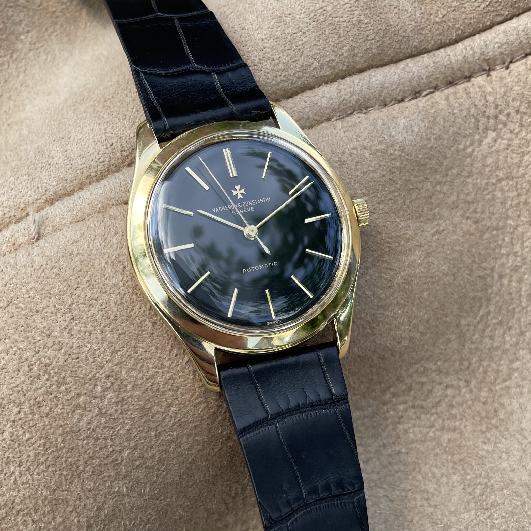 The watch has just had a full service, so it is ready for years to come. The watch is delivered on a black alligator strap. If sold outside the EU, another strap option will be discussed. If you would like to know more about this vintage Vacheron Constantin with black dial, feel free to contact me. Ah, and have a look here, to understand why these watches are a great value proposition.