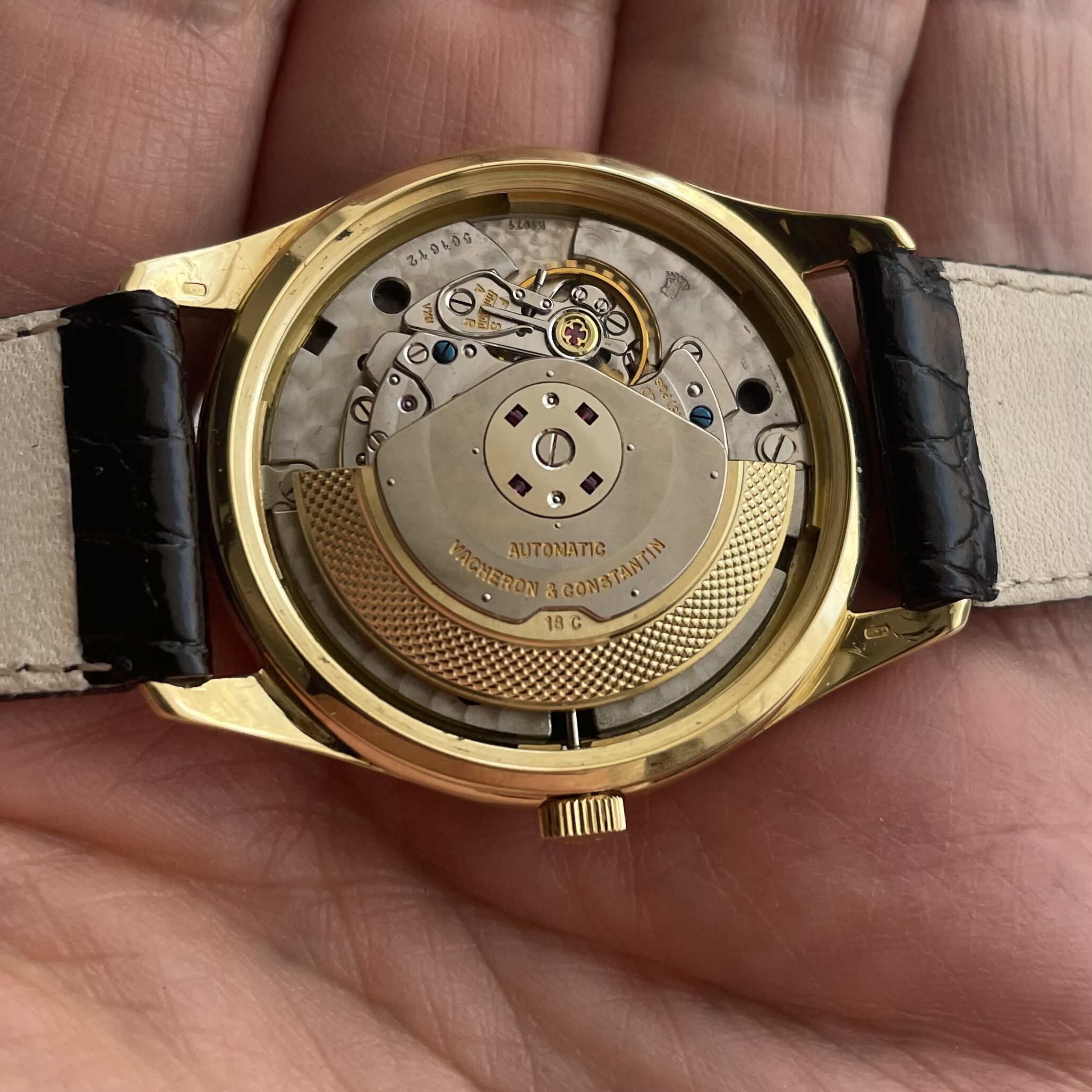 A vintage Vacheron Constantin black dial watch, that’s about as classy as it gets. The case is 36mm and has been made by the prestigious Spillman company. If you would like to become an expert on case makers yourself, have a look here. The condition of the case is very nice.
